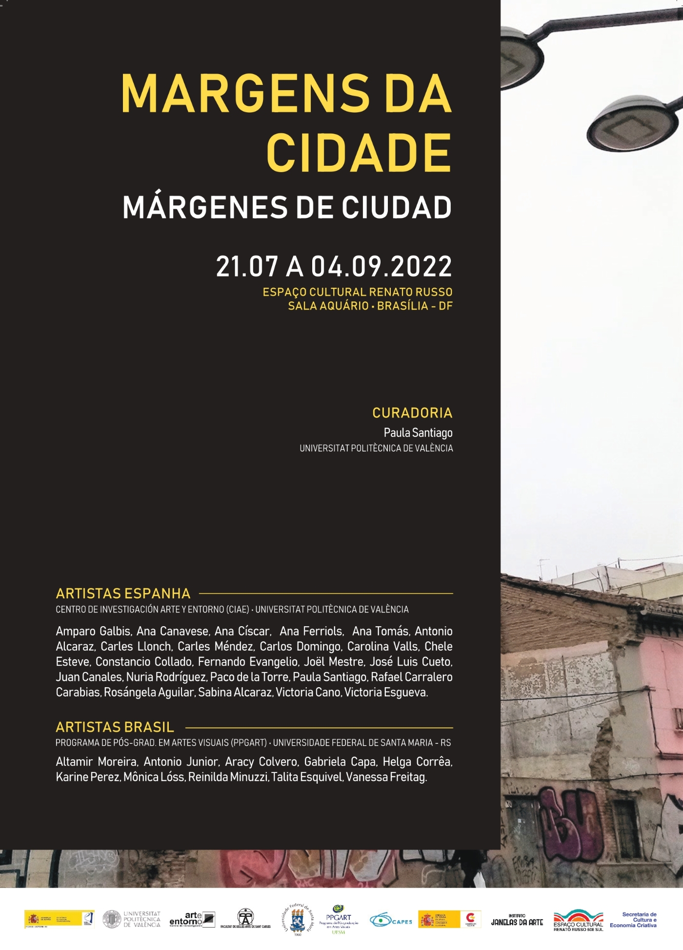 Docentes, mestres e doutorandos do Programa de Pós-Graduação em Artes Visuais (PPGArt) da UFSM estão participando da exposição “Margens da Cidade/Márgenes de Ciudad”, em cartaz no Espaço Cultural Renato Russo, em Brasília (DF). A exposição coletiva reúne artistas brasileiros e espanhóis e é fruto da parceria entre o Centro de Investigación Arte y Entorno, da Universitat Politécnica de València (UPV), Espanha, com o PPGArt. A ação é coordenada pelas professoras Paula Santiago, da UPV, e Helga Corrêa, da UFSM, e integra o Programa Institucional de Internacionalização (Capes/PrInt-UFSM), subprojeto “Memória e Tecnologias”.