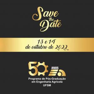 Em comemoração aos 50 anos do Programa de Pós-Graduação em Engenharia Agrícola (PPGEA) da Universidade Federal de Santa Maria será realizado um evento nos dias 13 e 14 de outubro, no Auditório Flavio Miguel Schneider no Centro de Ciências Rurais da UFSM. O evento contará com palestrantes sobre diversos assuntos e oferecerá certificação para os participantes.
