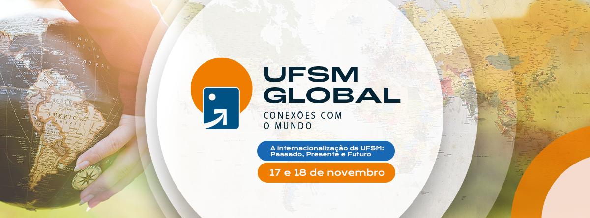 Buscando contribuir para uma memorização visual e aumentar a força do evento, foi desenvolvida uma identidade visual exclusiva para o UFSM Global, intitulada “Conexões com o mundo”. O projeto foi concebido pela Coordenadoria de Comunicação e Unidade de Comunicação Integrada da UFSM e está sendo executado pela equipe de Comunicação da SAI. A logo, composta por três elementos, visa representar o evento, que oportuniza a conexão com o mundo. Ao fundo, um círculo, que representa o globo; sobreposto a ele, um retângulo na vertical, que representa uma porta, uma entrada para este globo; por fim, uma seta em direção ao retângulo, representando a ação de “entrar no mundo”, o que se relaciona com o objetivo do evento de oportunizar a inserção da comunidade acadêmica da UFSM no âmbito internacional. Somando-se a esta figura, também existe uma sutil representação de um sorriso dentro do retângulo, que remete à positividade de conhecer novas culturas.