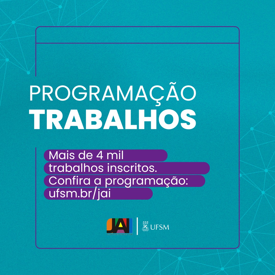 Com o objetivo de incentivar a iniciação de estudantes ao meio acadêmico, através da troca de experiências, a Jornada Acadêmica Integrada é dividida em cinco eventos: Salão de Iniciação Científica, de Ensino, de Pós-Graduação, de Extensão e JAI Externos, além da JAI Jovem. A programação, dias, horários e locais das apresentações dos mais de 4 mil trabalhos inscritos para esta edição do evento podem ser encontrados no site da JAI.