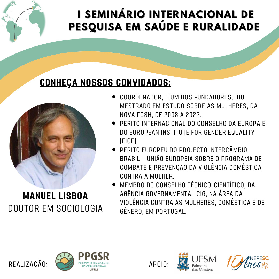 O evento contará com a participação de Manuel Lisboa, professor de Sociologia na Universidade Nova de Lisboa, Portugal; Rita Maria Heck, professora da Faculdade de Enfermagem da Universidade Federal de Pelotas; e Deise Lisboa Riquinho, professora da Escola de Enfermagem da Universidade Federal do Rio Grande do Sul.
