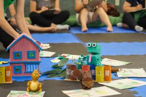 Ainda no segundo semestre, o espaço teve a participação dos estudantes do curso de Tecnologia em Gestão Ambiental da UFSM, matriculados na disciplina de Educação Ambiental Prática. Foram confeccionados diversos brinquedos e jogos, que foram disponibilizados ao laboratório. Os estudantes ainda cooperaram e interagiram durante as visitas das escolas.