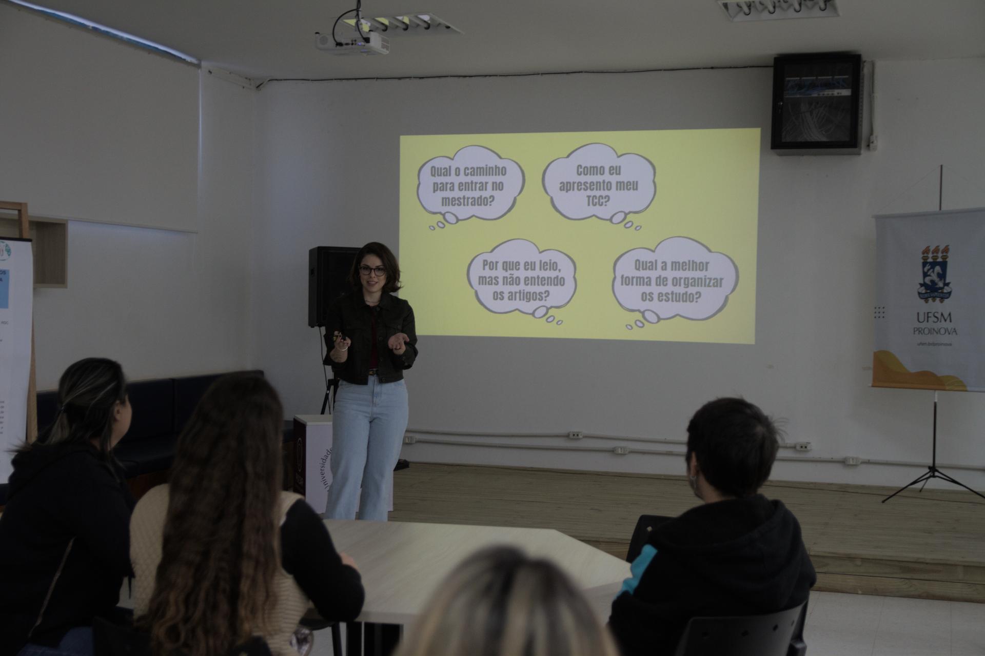 A doutoranda em Comunicação Midiática Alice Bianchini Pavanello ministrou uma palestra sobre o seu canal no Youtube (intitulado “Além do Lattes”), que busca simplificar a vida acadêmica. “O canal tem relação com essa proposta, porque considero que a criação dele foi um processo criativo. A ideia veio de uma inquietação minha diante das dificuldades que eu tive ao longo da minha trajetória acadêmica de como realizar processos que são tidos como óbvios pela academia, mas também que a gente tem dificuldade de encontrar informações”, explica Alice.