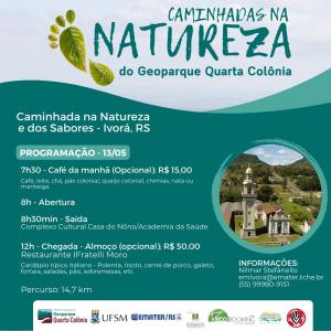 O município de Ivorá foi escolhido como local de retomada, no dia 13 de maio, do projeto Caminhadas na Natureza. As caminhadas são uma forma de desenvolvimento regional através do turismo, bem como de geração de renda para os agricultores familiares, pousadas e restaurantes, além de ser uma oportunidade para os participantes verem lugares que não conheciam. O projeto é realizado em uma parceria entre UFSM, Empresa de Assistência Técnica e Extensão Rural (Emater/RS), Geoparque Quarta Colônia Aspirante Unesco e prefeituras de municípios da região. Está prevista uma caminhada por mês, até o final do ano, em diferentes municípios da Quarta Colônia de Imigração Italiana, conforme o cronograma divulgado em abril.
