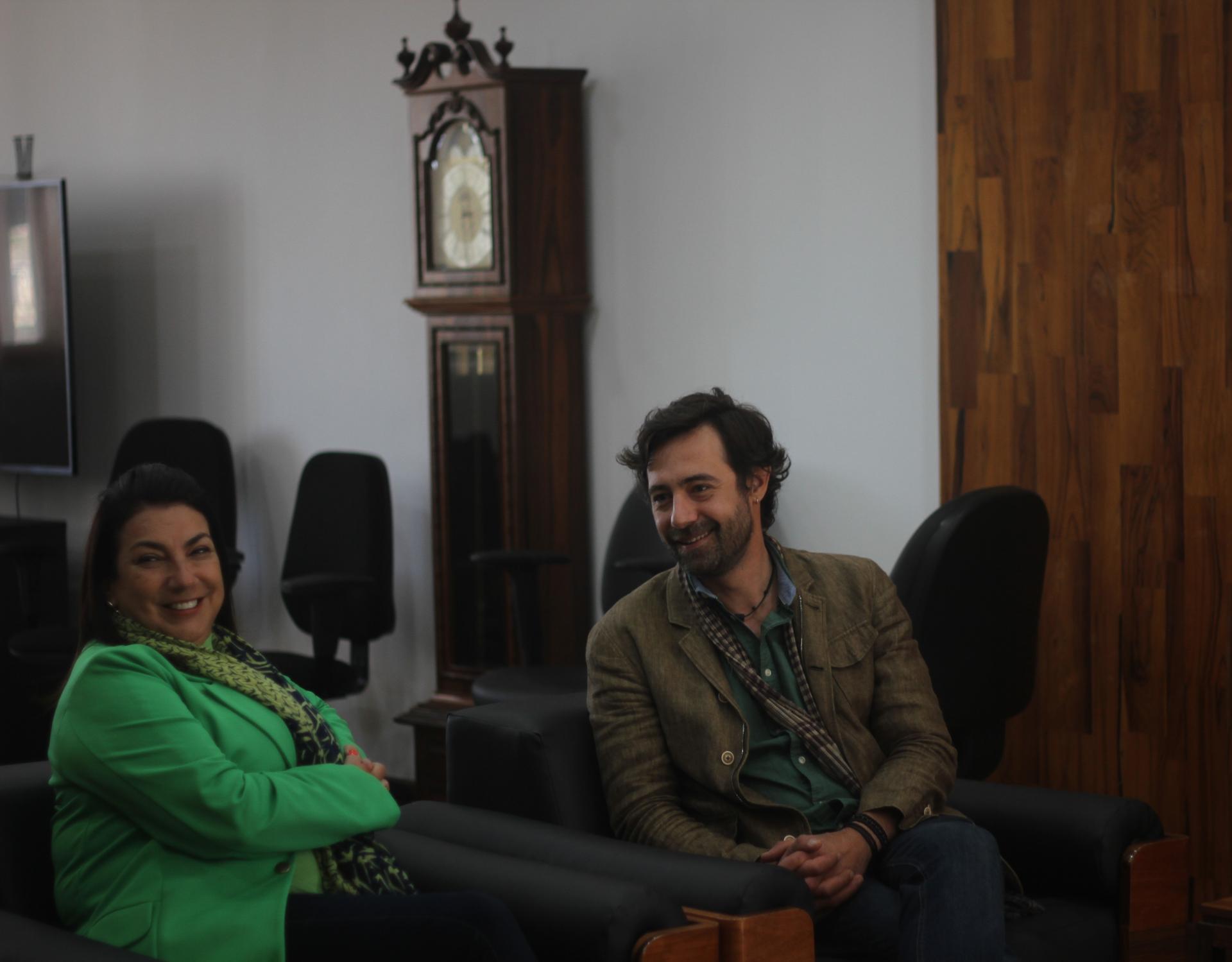 Na tarde desta quinta-feira (11), a vice-reitora Martha Adaime recebeu na Reitoria da UFSM o ator português Pedro Lamares, que está na cidade em virtude da 50ª Feira do Livro de Santa Maria. Na última quarta (10), o artista participou do Livro Livre com o espetáculo “A poesia é uma arma carregada de futuro”.