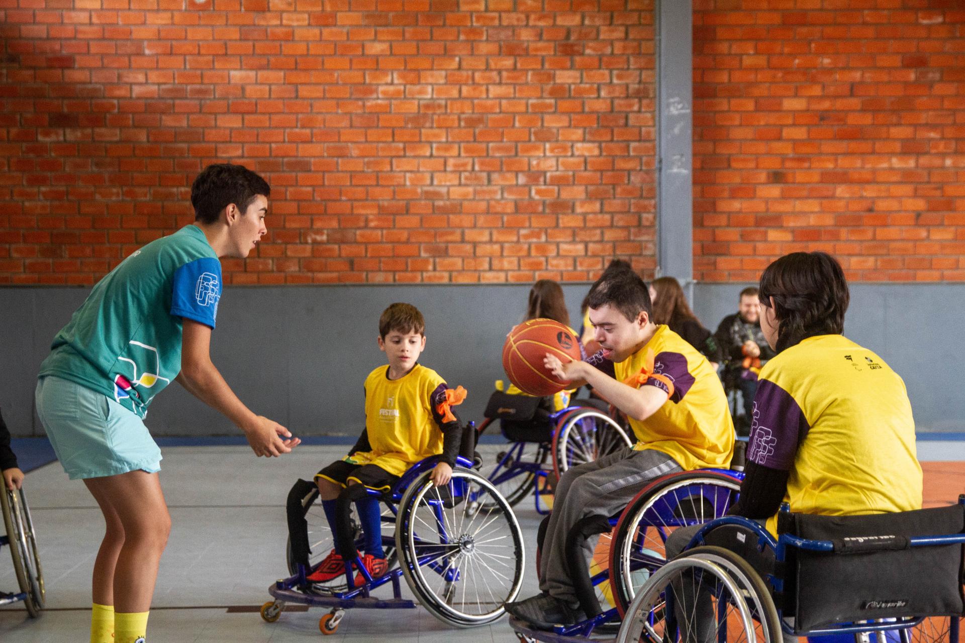 No basquete em cadeira de rodas, o desafio vai para além do arremesso na cesta. No evento, os participantes puderam experienciar a locomoção com a cadeira de rodas e entender as regras do jogo. A modalidade foi a preferida do pequeno Eduardo Rodrigues, da Escola José da Silva Xavier, que falou com entusiasmo da participação em mais uma edição do Festival. “Foi ‘dificilzinho’ mas eu achei bem legal, gostei bastante”, revela.