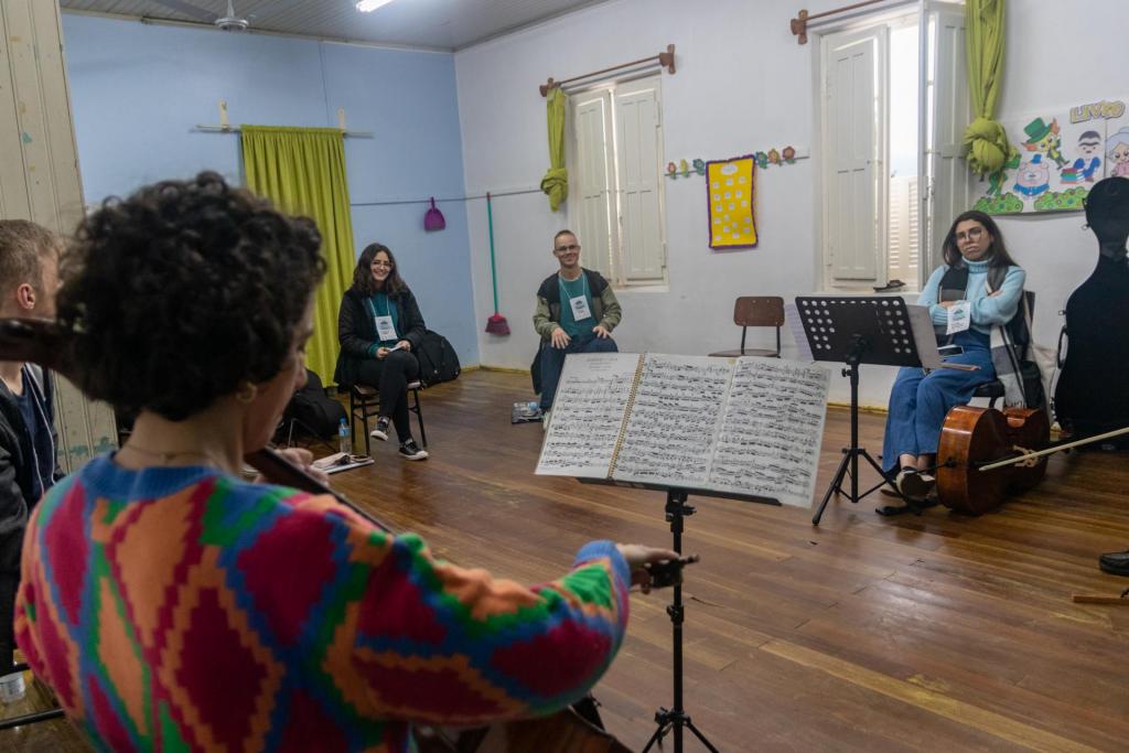 A professora de violino Arianna Gutierrez conta que, atualmente, a iniciativa atende 260 alunos, dos 4 aos 21 anos, de forma gratuita. A orquestra compartilha conhecimento sobre instrumentos de corda, sopro e percussão em sete municípios da Quarta Colônia: Silveira Martins, Agudo, Restinga Seca, Faxinal do Soturno, Dona Francisca, São João do Polêsine e Santa Maria. “É uma baita oportunidade porque estamos inserindo eles em um contexto internacional – onde eles já começam esse caminhar, essa trajetória profissional deles. Então, é muito importante”, destaca a professora.