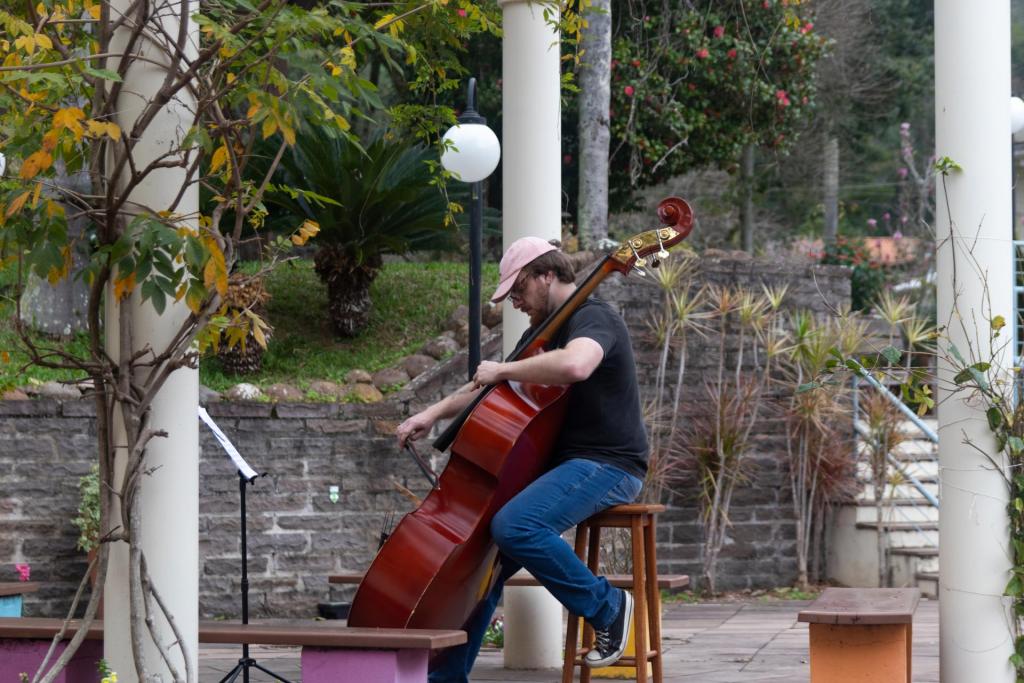 Apesar de estar localizado próximo à UFSM, o evento reúne alunos de diversos estados e países, que buscam uma imersão musical no pequeno distrito de Vale Vêneto. Foram 110 alunos inscritos nesta edição. Renato Tadeu Moro é acadêmico de música na Universidade Federal do Paraná (UFPR) e veio até o Festival após ficar sabendo da iniciativa por colegas e professores. Após participar da oficina de contrabaixo, ele aproveitou o espaço da escola para praticar e proporcionar um espetáculo à parte para quem passava pelo local. “Sobre o evento, eu diria que a comida é muito boa, as pessoas são muito calorosas, e está sendo muito legal conviver com músicos de alto nível. Pretendo voltar com certeza”, conta Renato.