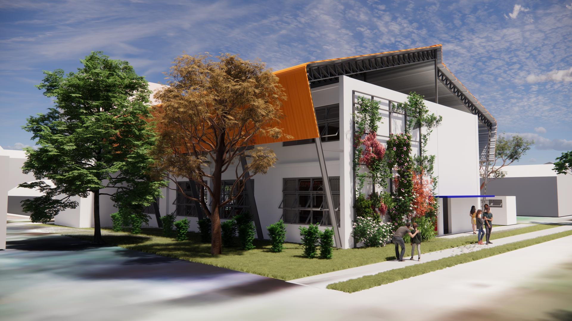 No telhado, o prédio vai contar ainda com uma cobertura metálica com os lados inclinados, para facilitar o escoamento da água da chuva. O conforto térmico será garantido por aparelhos de ar-condicionado e, na fachada oeste, também por uma cortina verde. A obra está sendo executada pela empresa MTX Construções, vencedora da licitação, ao custo de aproximadamente R$ 3,63 milhões.