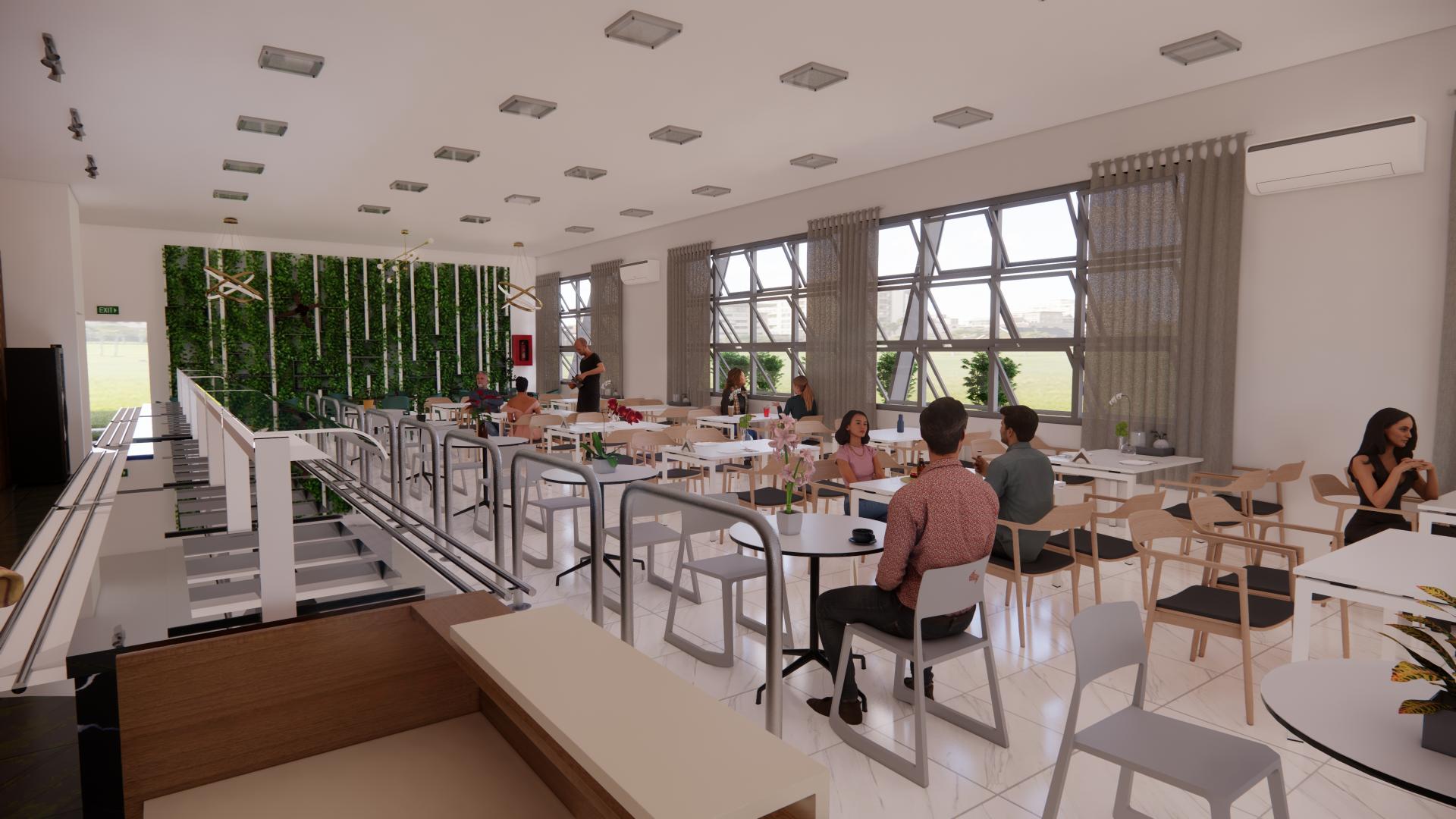 Para acessar o restaurante, o público terá de passar por um hall no qual ficarão banheiros, escada e elevador. A arquiteta da Pró-Reitoria de Infraestrutura (Proinfra) Gianine Pivetta Mello, responsável pelo projeto, explica que a ideia é permitir o acesso às duas salas multiuso – que estarão no segundo pavimento – mesmo quando o restaurante estiver fechado. Ambas foram projetadas em conformidade com o conceito de “salas inovadoras”, equipadas com paredes revestidas de quadro branco, cadeiras empilháveis, mesas rebatíveis e mobiliário flexível. Isso permitirá que as salas se adaptem a diferentes configurações espaciais. Uma das salas terá capacidade aproximada de 90 pessoas e a outra, de 53 pessoas.