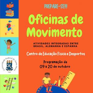 Cada oficina de movimento terá entre 50 e 60 vagas. Além dos estudantes do CEFD, as atividades estão abertas à participação de acadêmicos de outros cursos de Educação Física e áreas vinculadas com a licenciatura, bem como aos professores que atuam em escolas, independentemente da área de atuação. Elas serão ministradas por três docentes (um da Espanha, um da Alemanha e um profissional egresso do CEFD).