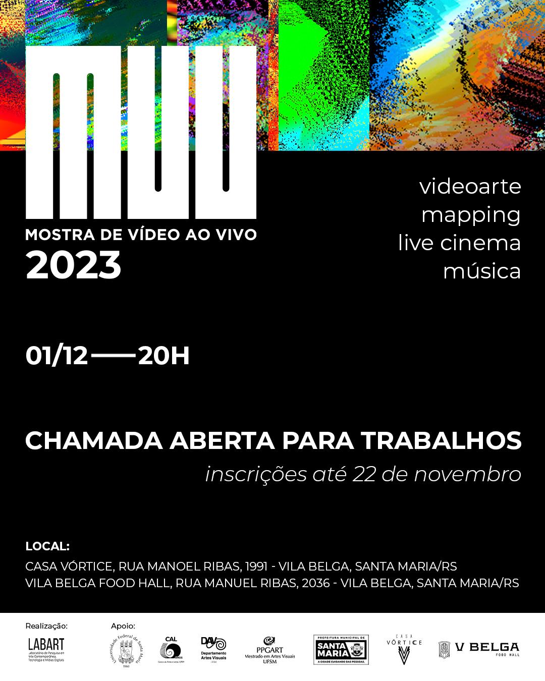 Está aberta a chamada de trabalhos para a Mostra de Vídeo ao Vivo (MVV) 2023, um evento que explora as artes do vídeo – como a videoarte, o live cinema e o video mapping – no espaço público da cidade de Santa Maria. As projeções em vídeo ocorrerão ao ar livre no dia 1º de dezembro, a partir das 20h, em duas edificações da Vila Belga, ocupadas atualmente pelos estabelecimentos Casa Vórtice e Vila Belga Food Hall, ambas situadas na Rua Manoel Ribas.