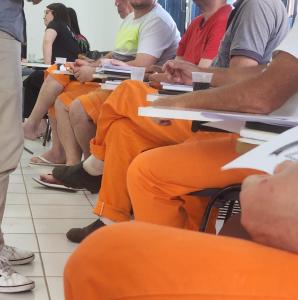 Aconteceu na Penitenciária Estadual de Santa Maria, na última sexta-feira (24), mais uma ação cultural inovadora: o primeiro Sarau Literário promovido pelo Grupo Temático de Extensão Prisional, vinculado ao convênio da UFSM com a Superintendência dos Serviços Penitenciários (Susepe). A atividade proporcionou uma atmosfera única, onde os participantes puderam expressar suas emoções e talentos por meio da literatura. O sarau contou com o envolvimento entusiasmado de 15 apenados do grupo de Remição pela Leitura contemplados pelo projeto, demonstrando a importância da arte como expressão e ressocialização. A programação contou com performances de poesias, leitura de crônicas e relatos pessoais que preencheram todo o evento, destacando o poder transformador da cultura no ambiente prisional.
