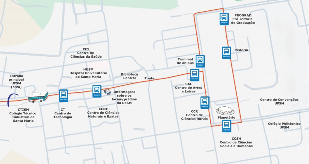 Nos mapas abaixo é possível visualizar os prédios em que serão aplicadas as provas e a rota de ônibus dentro do Campus Sede. Próximo ao CCNE haverá um local para informações sobre os prédios de realização das provas e banheiros químicos. No largo do Planetário, empresas parceiras estarão realizando ações diversas. Também terá banheiros químicos para aqueles que estiverem pelo Campus aguardando os vestibulandos.