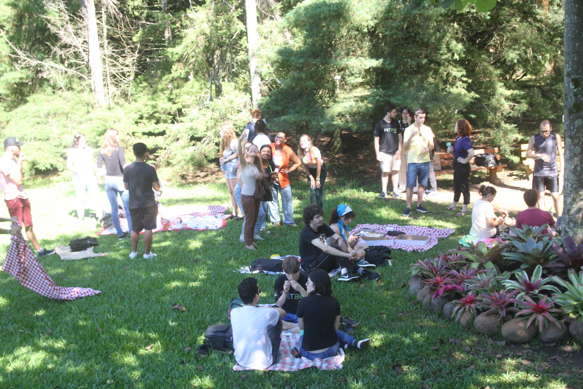 O Jardim Botânico da UFSM recebeu na manhã desta terça-feira (12) a segunda edição do Calourique, parte da programação da Calourada do Centro de Ciências Naturais e Exatas (CCNE), feita em parceria com os diretórios acadêmicos. O evento iniciou-se com um piquenique e uma apresentação dos integrantes do Programa de Educação Tutorial do curso de Ciências Biológicas (PET Bio). Os representantes do PET explicaram o funcionamento do grupo e as atividades de ensino, pesquisa e extensão realizadas, como palestras em escolas, eventos e minicursos para os graduandos.