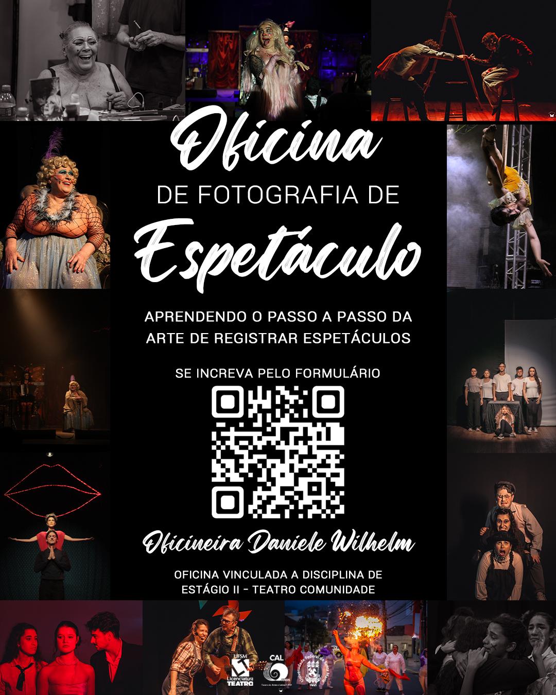O curso de Licenciatura em Teatro da UFSM vai ofertar à comunidade a Oficina de Fotografia de Espetáculo, a qual é vinculada à disciplina de Estágio Supervisionado de Docência em Teatro II (DAC 1143). A proposta é que cada participante aprenda os conceitos básicos envolvidos no trabalho de fotografar espetáculos, incluindo conhecimento técnico da fotografia, sensibilidade, concentração, rapidez, iluminação e posicionamento no espaço. A oficineira será Daniele Wilhelm, estudante do curso, tendo como base o livro “A arte da fotografia de espetáculo”, de Emidio Luisi.