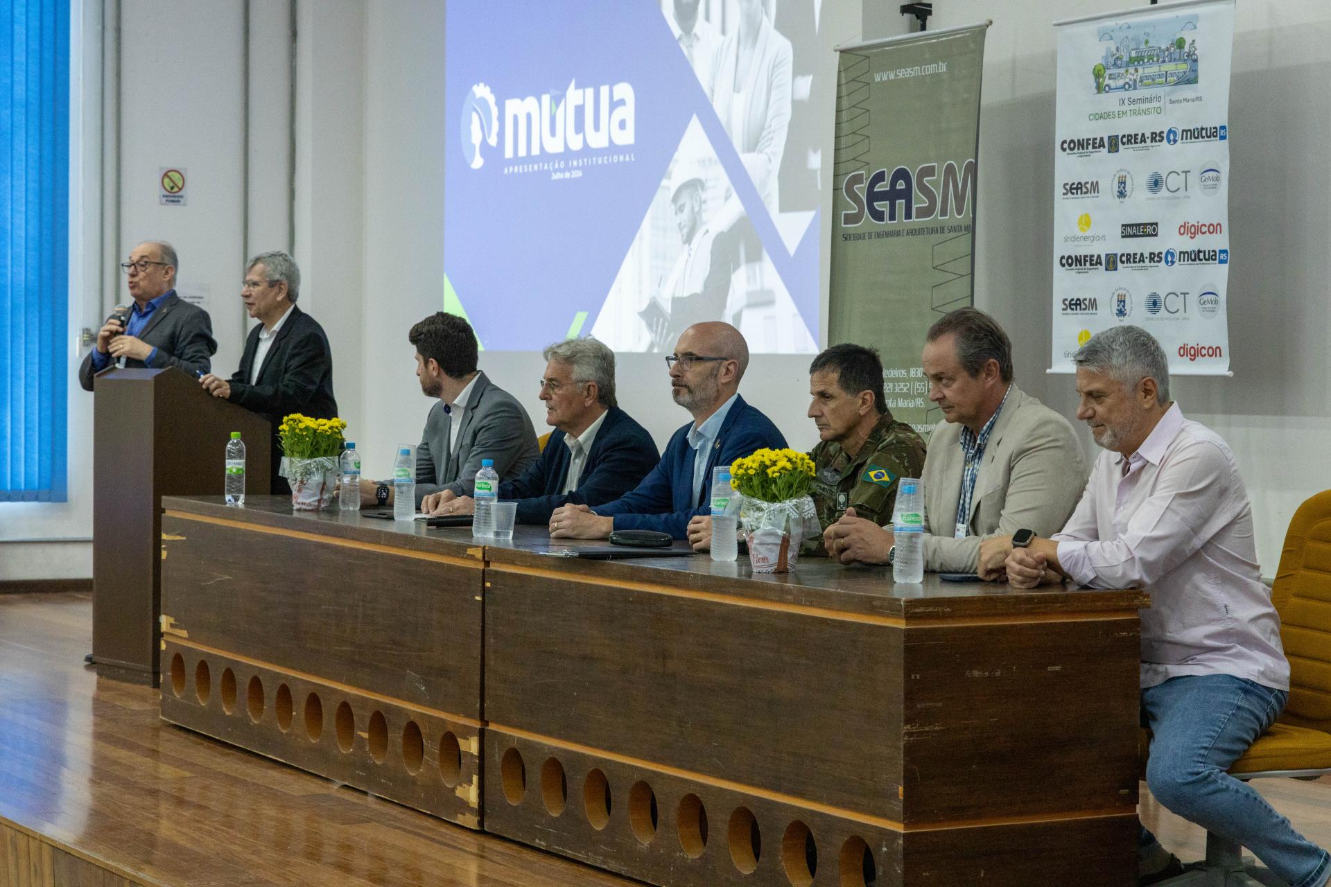 O 9º Seminário Cidades em Trânsito é realizado pela Sociedade de Engenharia e Arquitetura de Santa Maria (Seasm) e patrocinado pelos conselhos federal e regional de Engenharia e Agronomia (Confea e Crea/RS) e Mútua-RS (Caixa de Assistência dos Profissionais do Crea). Conta com o apoio do Gemob e da UFSM, bem como das empresas Digicon e Sinaleiro – Projetos de Sinalização Viária e Digicon.