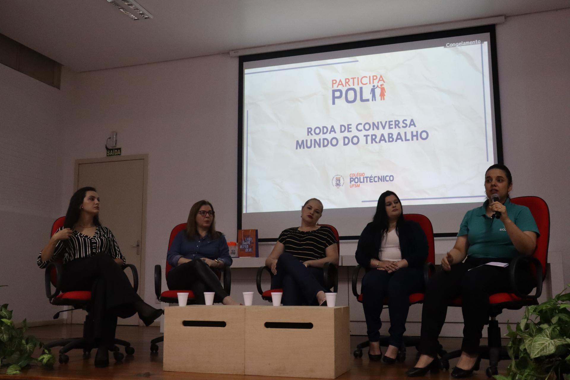 Já é quase final de semestre, mas os alunos do Colégio Politécnico da UFSM não desanimaram. Na noite de quarta-feira (13) estudantes e professores lotaram o auditório do Poli para prestigiar o evento “Roda de Conversa – Mundo do Trabalho”, que reuniu cinco egressas do ensino técnico para contar suas experiências no mercado.