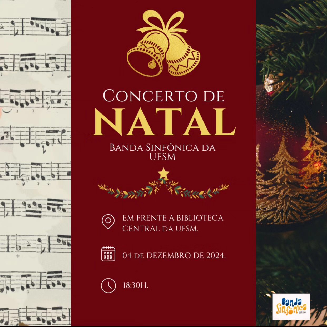Nesta quarta-feira (4), a Banda Sinfônica da UFSM fará a sua apresentação de encerramento de 2024. Sob a regência dos professores Diego Ramires e Clayton Miranda, o Concerto de Natal inicia-se às 18h30min, em frente à Biblioteca Central. Entre os destaques do repertório está a trilha sonora do filme “O Estranho Mundo de Jack” (The Nightmare Before Christmas), composta por Danny Elfman, além de músicas de artistas como Queen e Coldplay. O espetáculo é gratuito e aberto ao público em geral.