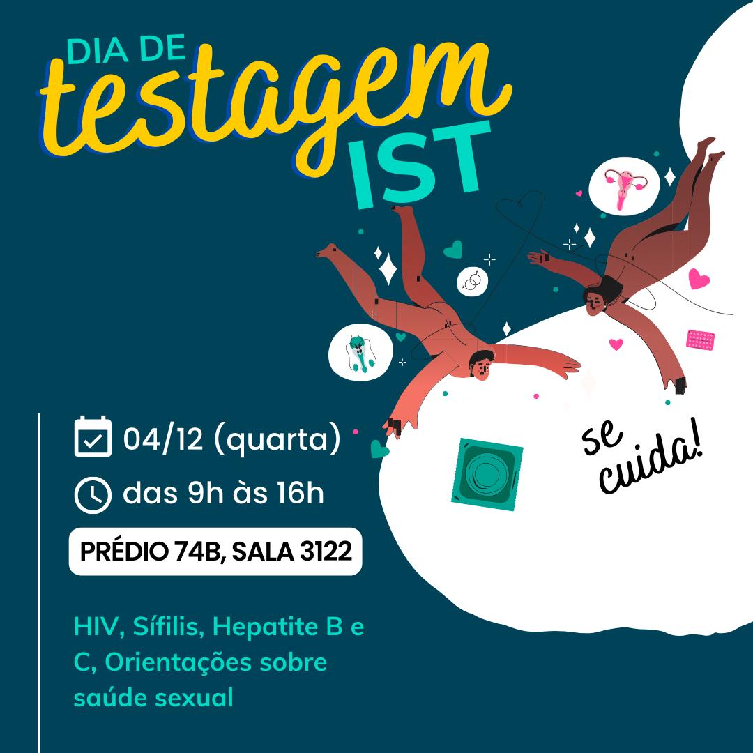 Nesta quarta-feira (4), serão realizados testes de HIV, Sífilis, Hepatite B e C na sala 3122 do prédio 74B do campus sede, no horário das 9h às 16h. Promovida pelo Programa de Pós-Graduação em Gestão de Organizações Públicas (PPGOP), curso de Serviço Social e direção do Centro de Ciências Sociais e Humanas (CCSH), a atividade tem como objetivo incentivar a prevenção e conscientização dos jovens a respeito da sua saúde sexual. Aberta à comunidade em geral, a testagem será realizada por profissionais residentes do Hospital Universitário de Santa Maria (Husm) e por estudantes do curso Técnico em Enfermagem do Colégio Politécnico da UFSM.