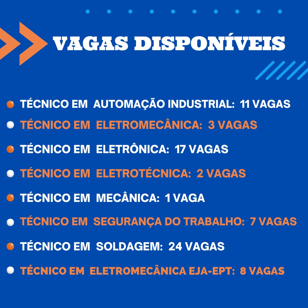 Como requisito mínimo, para os cursos subsequentes, exige-se que os candidatos tenham concluído o ensino médio; no caso do curso EJA, é necessário o ensino fundamental completo. Para os cursos subsequentes, os candidatos devem se inscrever aqui; para o curso EJA, aqui. No momento da inscrição, deve-se anexar a documentação exigida no edital.