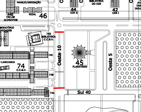 Na próxima segunda-feira (7), entre 8h45 e 9h30, o trecho da rua em frente ao CCSH (rua Oeste 10, entre as ruas Sul 35 e Sul 40) estará fechado para realização de atividade em comemoração aos 55 anos do centro (conferir o trecho na imagem ao lado).