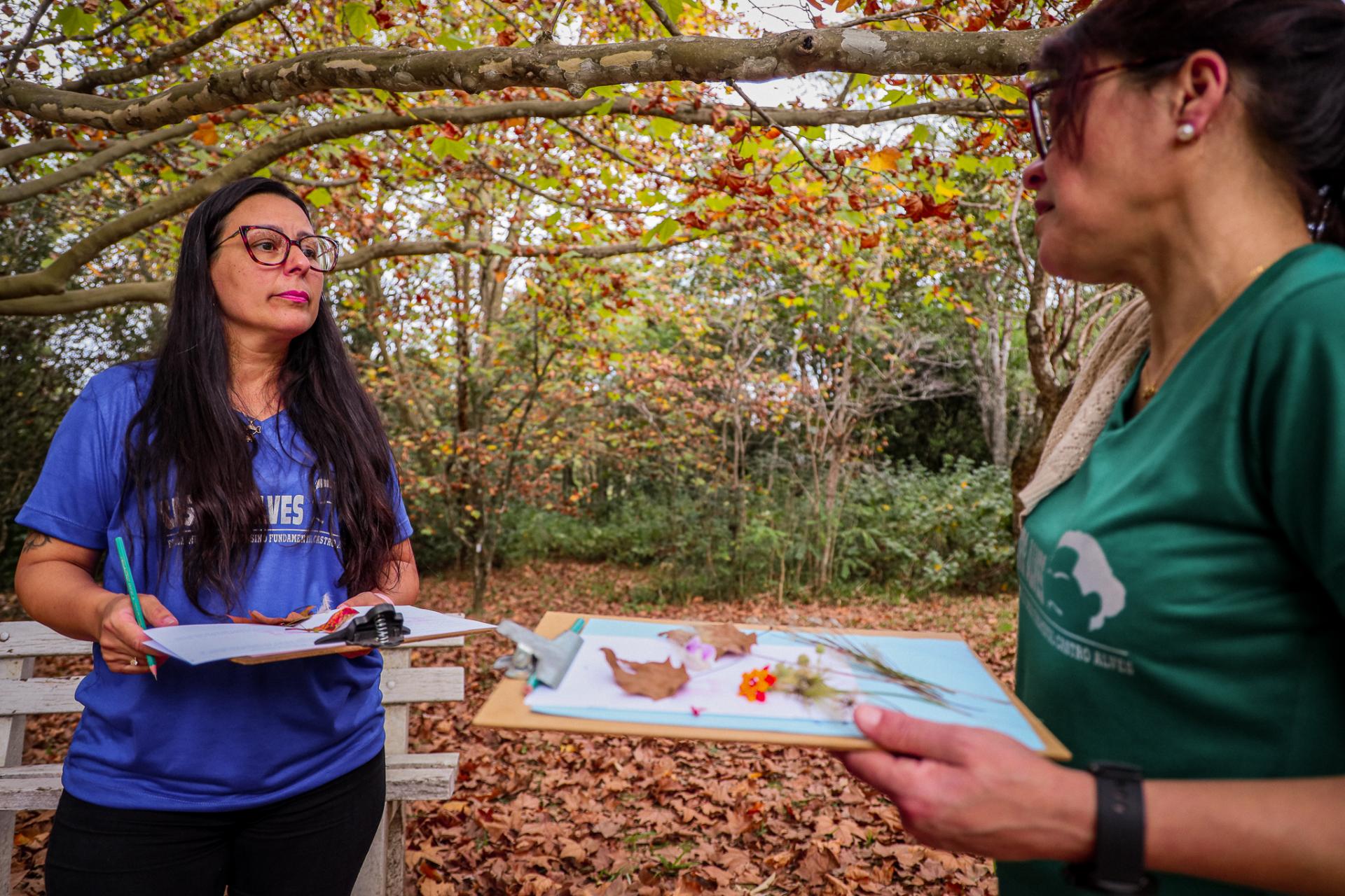 “Ele tem a intenção de estimular os sentidos, trabalhar o pertencimento através do uso dos sentidos, para se conectar com a gente mesmo, com o presente e com o entorno, prestar atenção nas coisas que na maioria das vezes passam despercebidas, como sentir os cheiros e as texturas. Ele explora um pouco da arte também, porque pede para fazer uma colagem e um poema no final”, relatou a integrante do grupo, gestora ambiental e mestra em educação, Stefania Gorski.