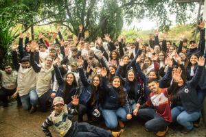 Calouros e veteranos de Agronomia no Hall do RU