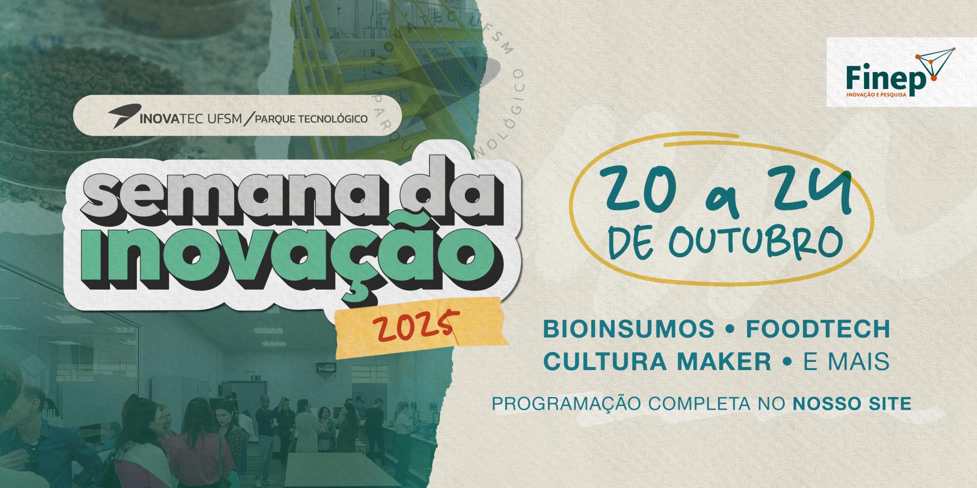 Na próxima semana, de terça (21) a sexta-feira (24), acontece a segunda edição da Semana da Inovação, realizada pelo InovaTec UFSM Parque Tecnológico. Neste ano, o evento será uma verdadeira jornada de imersão para mostrar como as grandes ideias nascem e se transformam em soluções reais na UFSM.