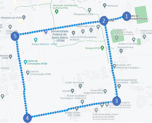 arte colorida quadrada, reproduz mapa das ruas que serão bloqueadasNa sexta-feira (14), entre 17h e 19h, ocorrerá o fechamento das ruas próximas à Reitoria, CEFD, Parque Inovatec e Centro de Convenções (conforme mapa ao lado) devido à realização da Rústica da 5ª Copa dos Servidores da UFSM.