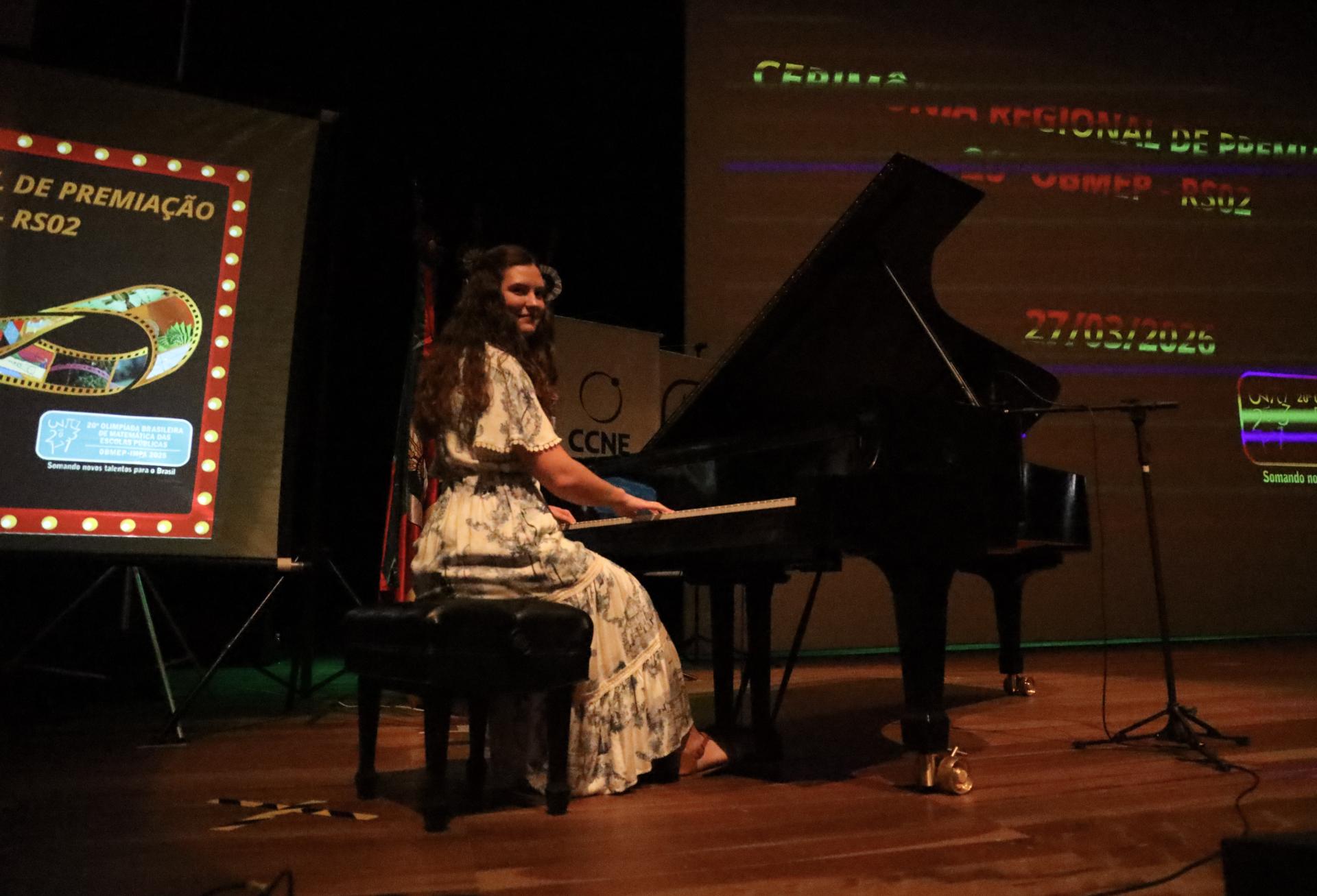 Hoje, aos 21 anos e estudante do bacharelado em Música na UFSM, ela retorna à cerimônia em outro papel: sentada ao piano, conduzindo um dos momentos culturais do evento realizado no Centro de Convenções. “As pessoas pensam que não tem nada a ver, mas tem muito a ver. Ritmo é pura matemática”, conta Mariana.