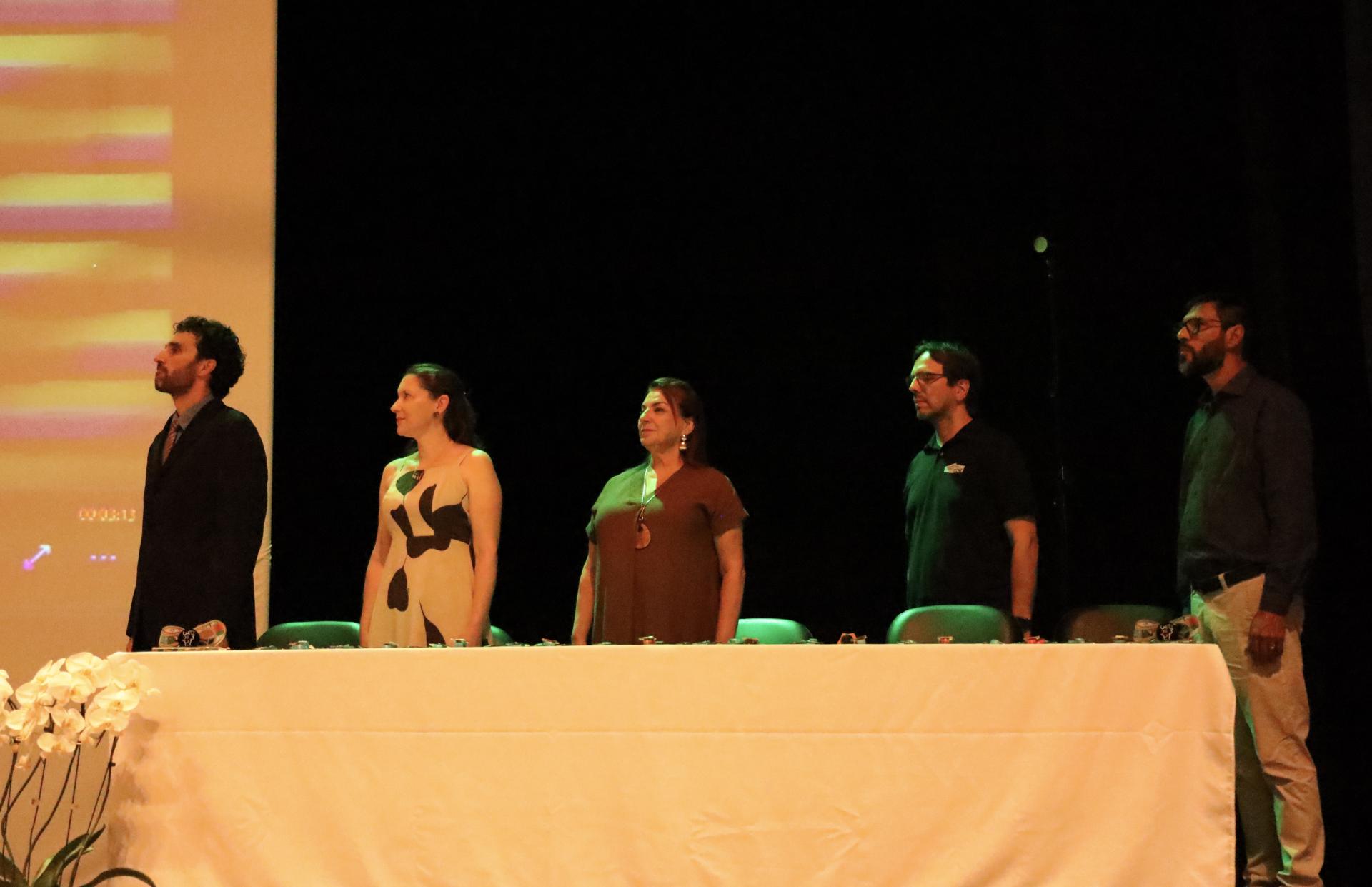 Compuseram a mesa de abertura a reitora da UFSM, Martha Adaime, e o diretor do CCNE, Félix Antunes Soares. Participaram ainda o chefe do Departamento de Matemática da UFSM, Edson Sidney Figueiredo, o coordenador regional do Programa de Iniciação Científica Jr. (PIC), o professor de Matemática da UFSM Márcio Luís Miotto e a coordenadora regional e professora de Matemática na UFSM, Taísa Miotto.