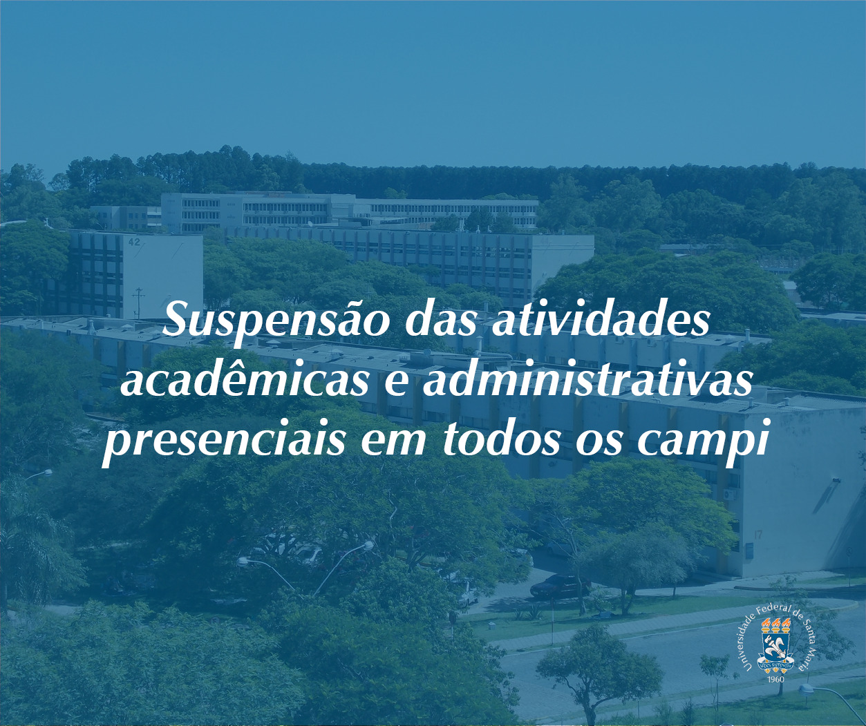 Nota da UFSM sobre Coronavírus (COVID-19)Atualização: Nesta segunda-feira (16), a Universidade Federal de Santa Maria emitiu nota suspendendo todas as atividades acadêmicas e administrativas pelo período de [...]