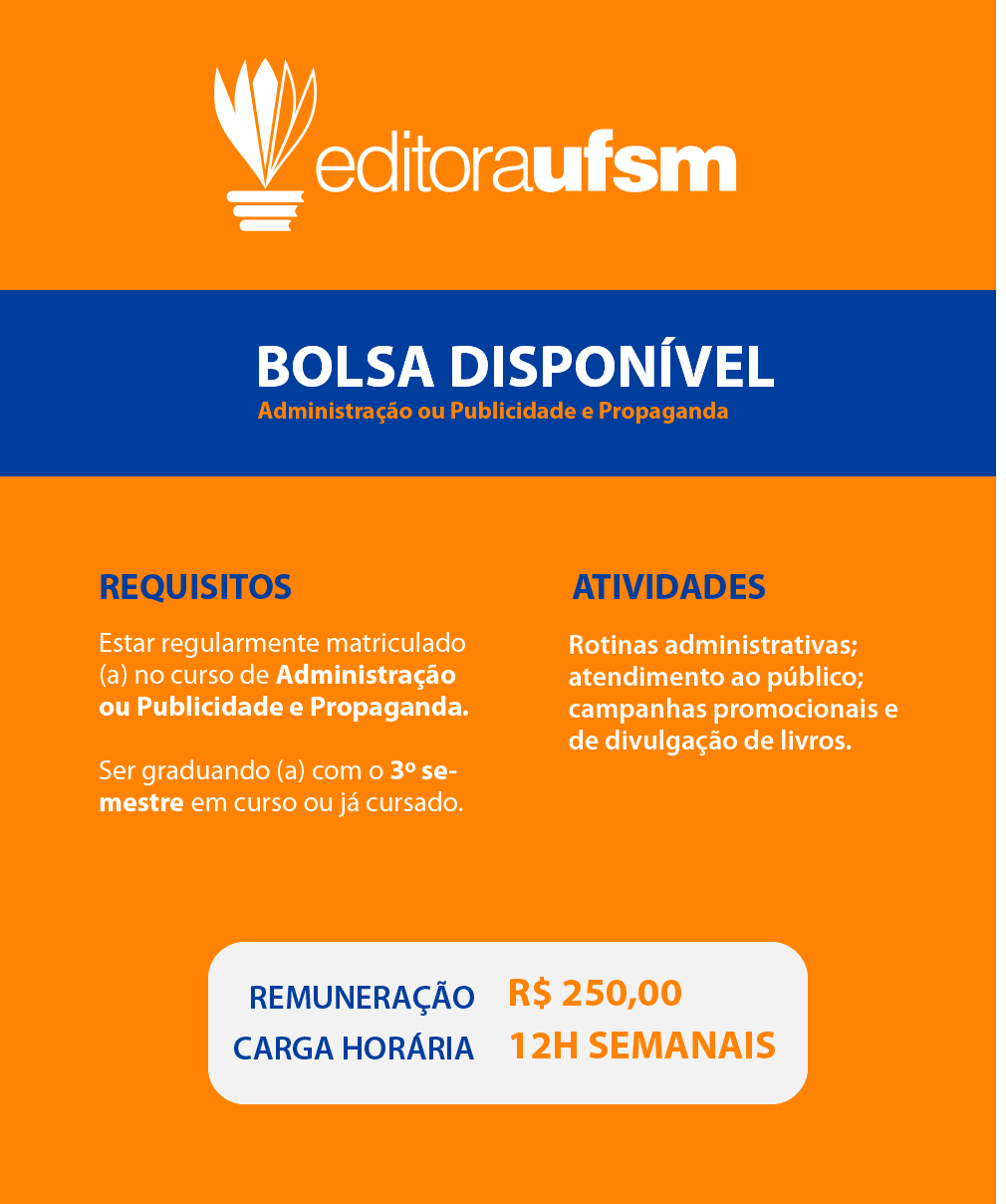 Revista Arco seleciona bolsista de Relações PúblicasA Coordenadoria de Comunicação Social da UFSM divulga edital para seleção de bolsista para atuação na Revista Arco. Podem se candidatar estudantes [...]