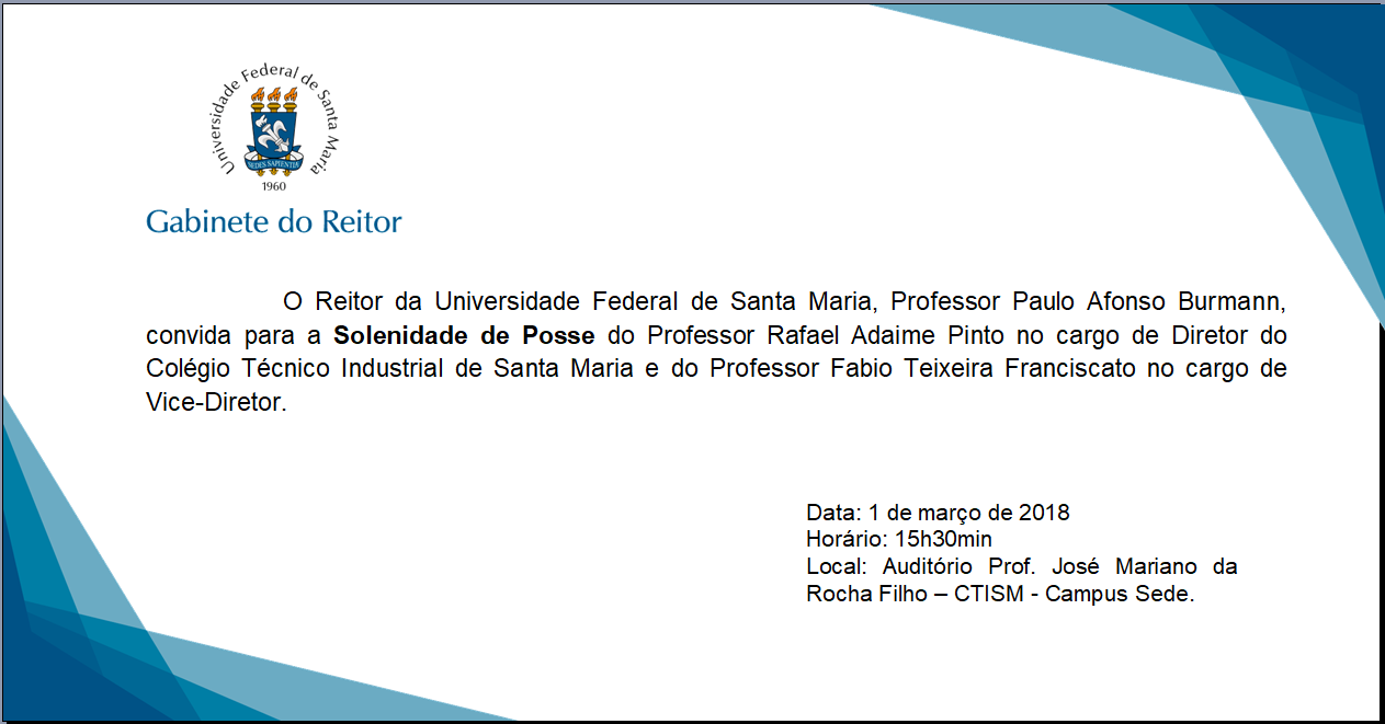 Publicada resolução que altera o regulamento da Coordenadoria de Ações EducacionaisO reitor Paulo Afonso Burmann assinou a resolução Nº 30/2017 da UFSM, que altera o regulamento interno da Coordenadoria de Ações Educacionais. Subordinado ao [...]