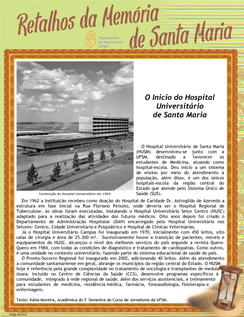 Projeto Retalhos da Memória de Santa Maria – artigo 046 O Inicio do Hospital Universitário de Santa Maria