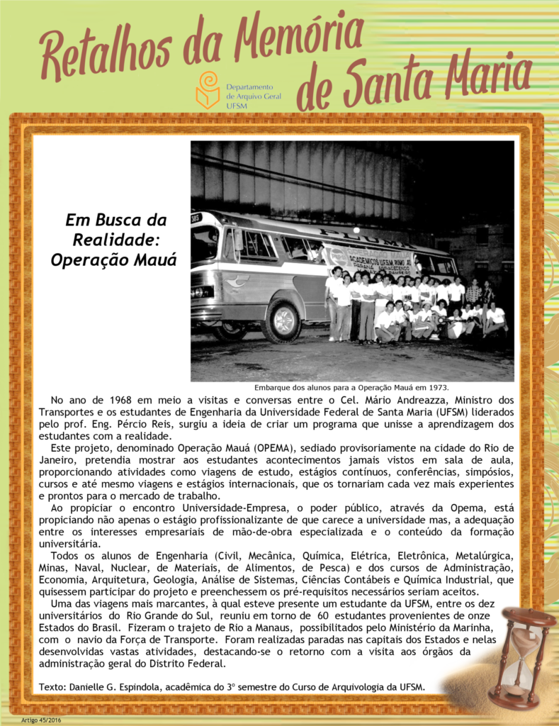 Projeto Retalhos da Memória de Santa Maria – artigo 045 Em Busca da Realidade: Operação Mauá