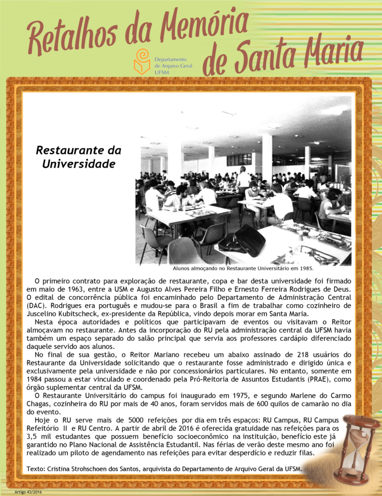 Projeto Retalhos da Memória de Santa Maria – artigo 043 Restaurante da Universidade