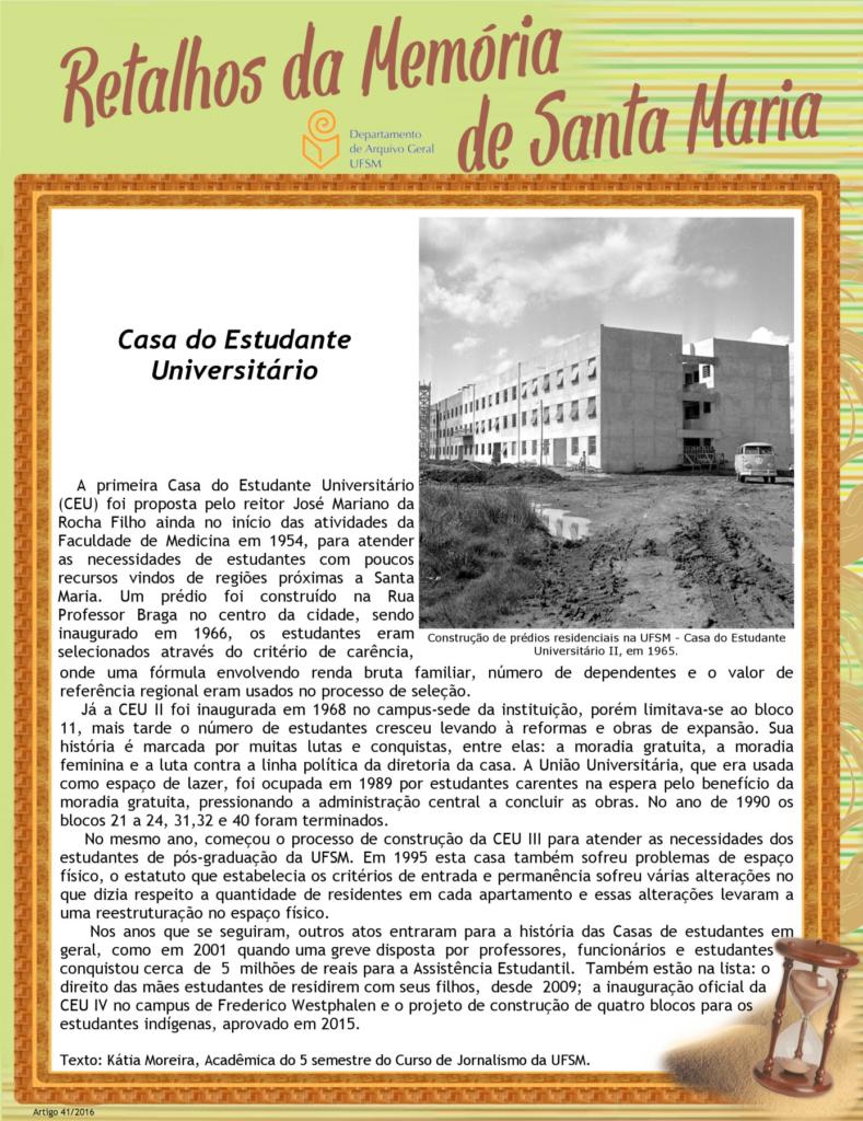 Projeto Retalhos da Memória de Santa Maria – artigo 041 Casa do Estudante Universitário