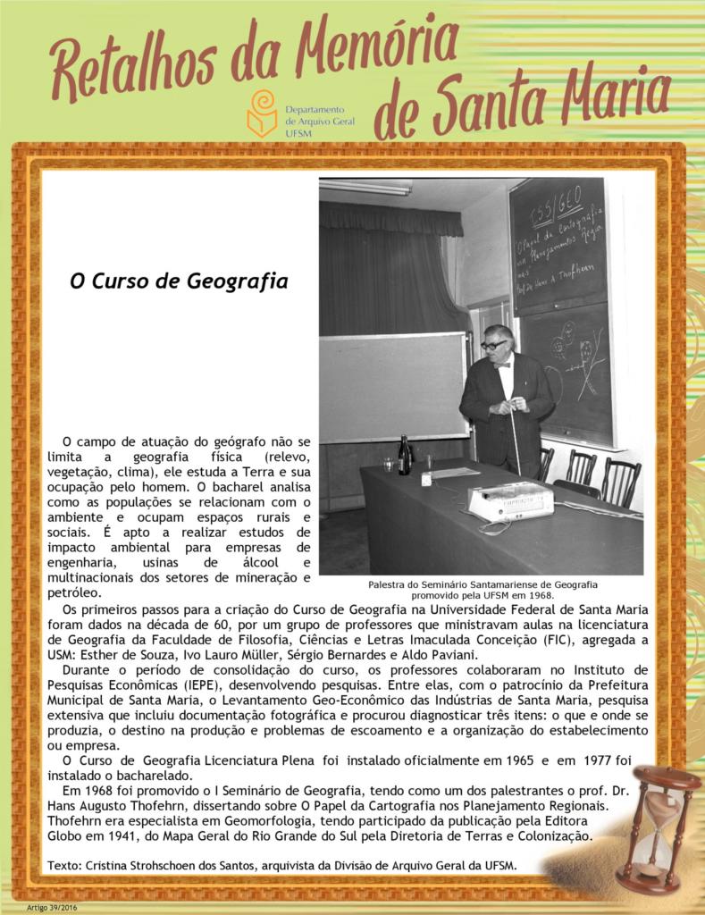 Projeto Retalhos da Memória de Santa Maria – artigo 039 O Curso de Geografia