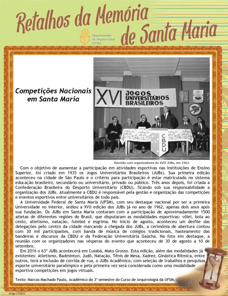 Projeto Retalhos da Memória de Santa Maria – artigo 037 Competições Nacionais em Santa Maria