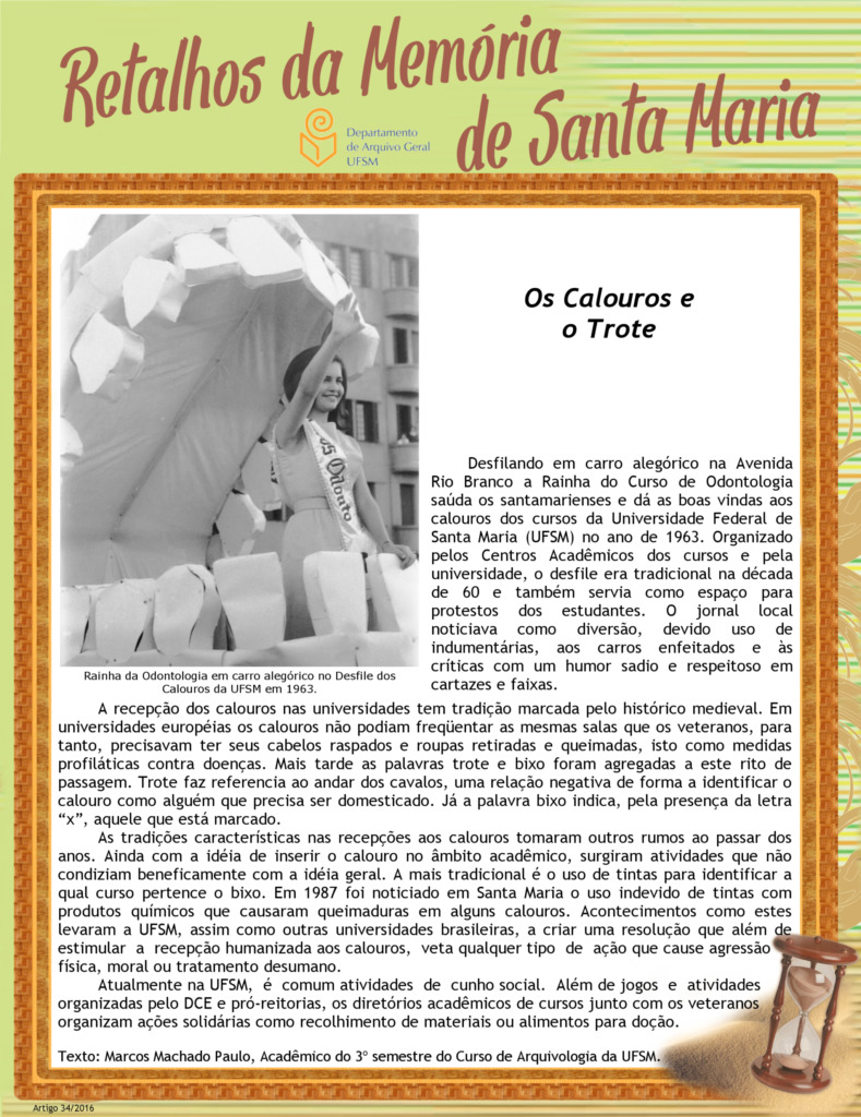 Projeto Retalhos da Memória de Santa Maria – artigo 034 Os Calouros e o Trote