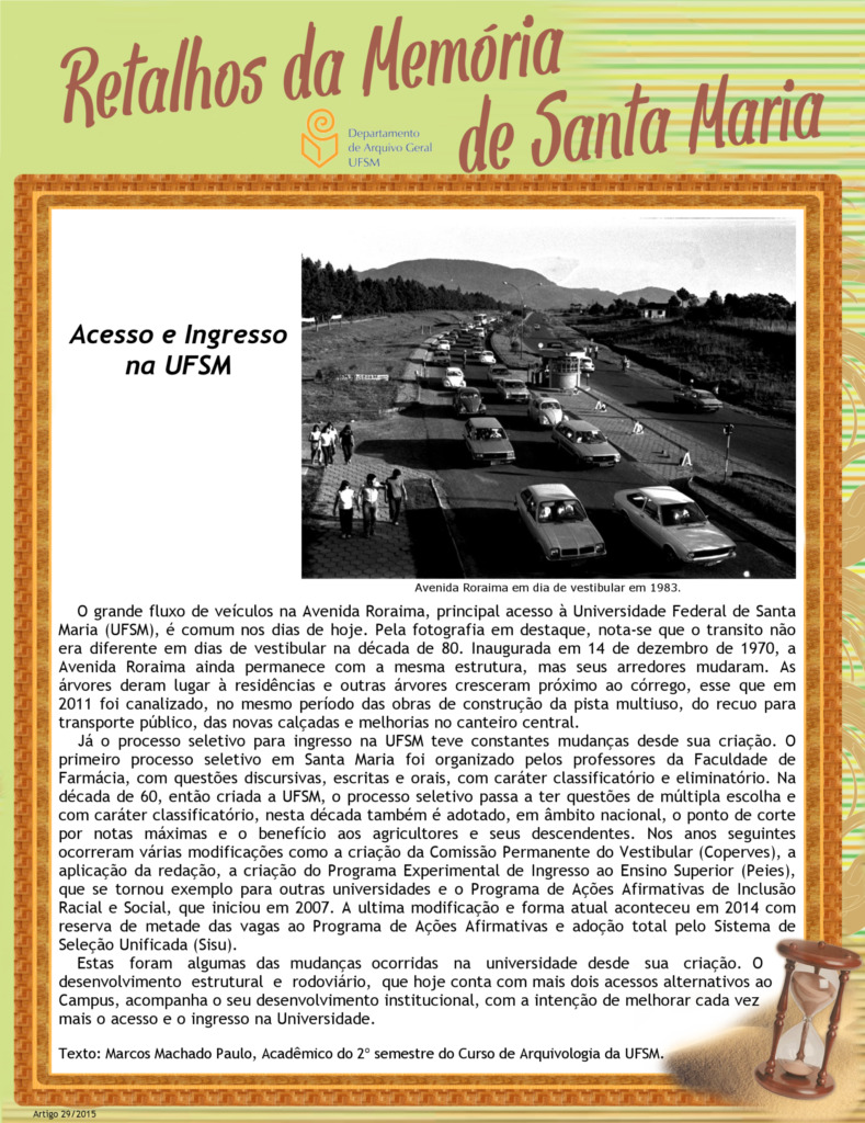 Projeto Retalhos da Memória de Santa Maria – artigo 029 Acesso e Ingresso na UFSM