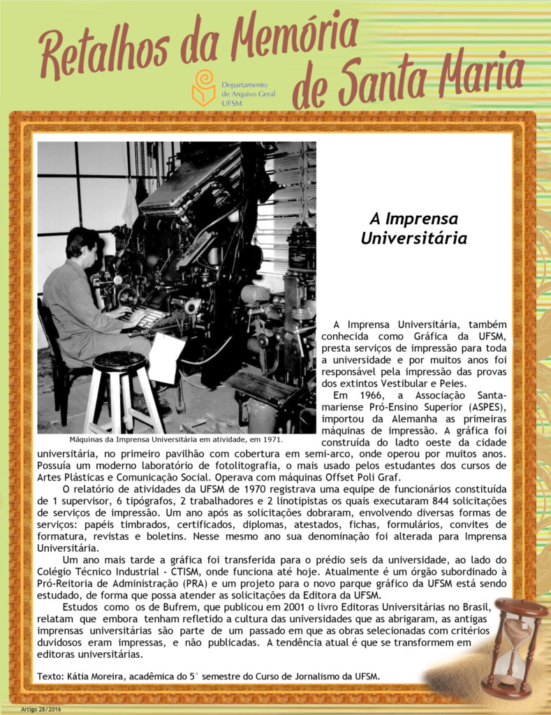 Projeto Retalhos da Memória de Santa Maria – artigo 028 A Imprensa Universitária