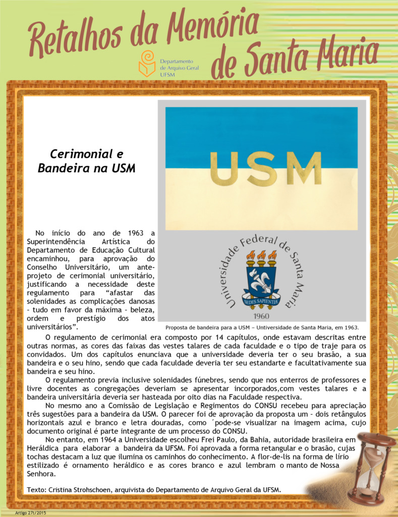 Projeto Retalhos da Memória de Santa Maria – artigo 027 Cerimonial e Bandeira na USM