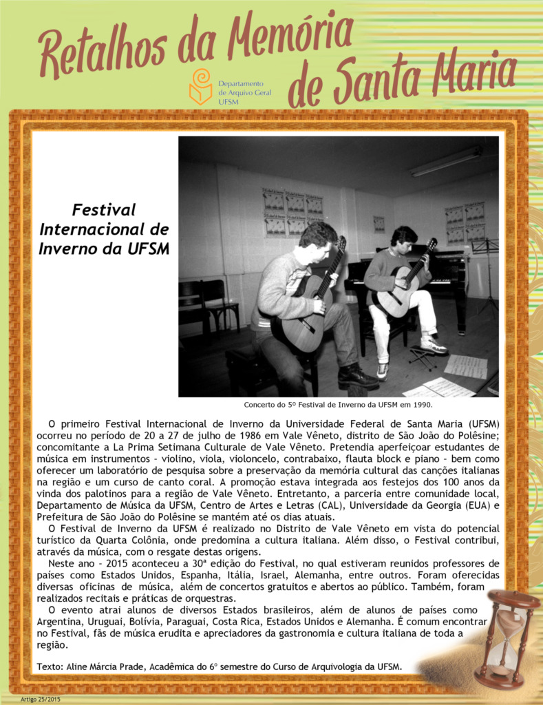 Projeto Retalhos da Memória de Santa Maria – artigo 025 Festival Internacional de Inverno da Universidade Federal de Santa Maria