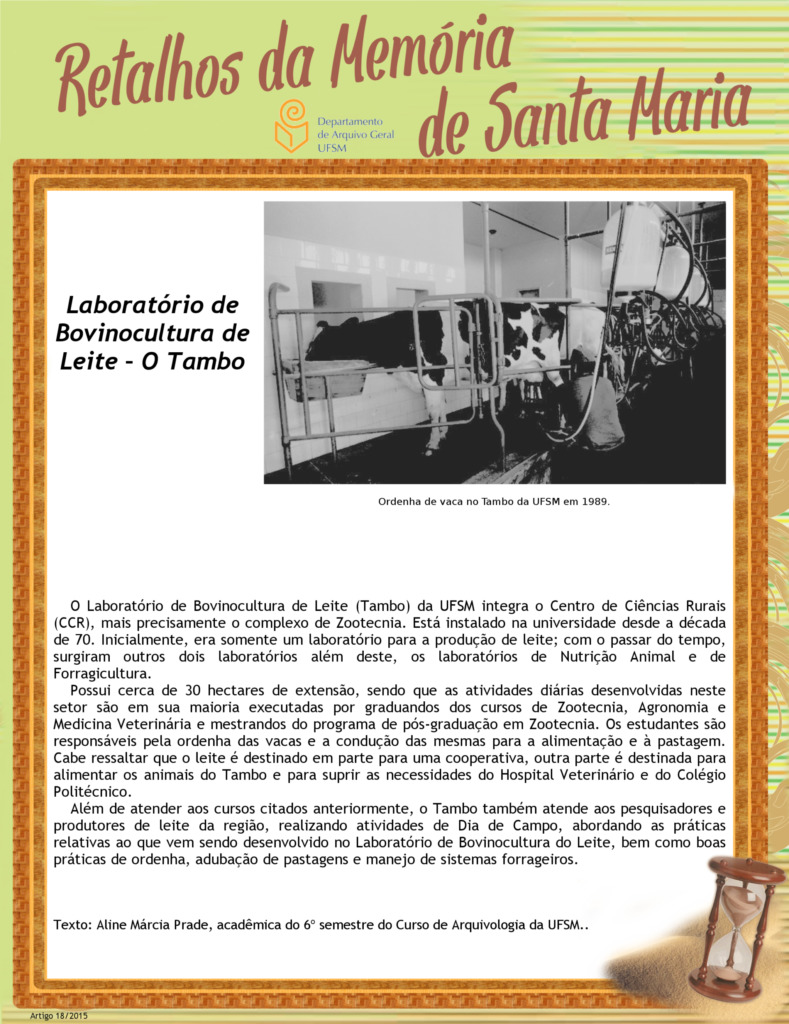 Projeto Retalhos da Memória de Santa Maria – artigo 018 Laboratório de Bovinocultura de Leite – O Tambo