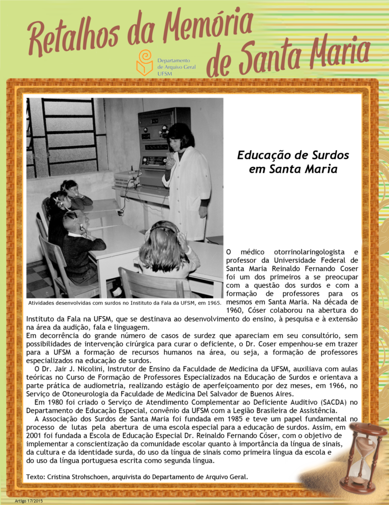 Projeto Retalhos da Memória de Santa Maria – artigo 017 Educação de Surdos em Santa Maria
