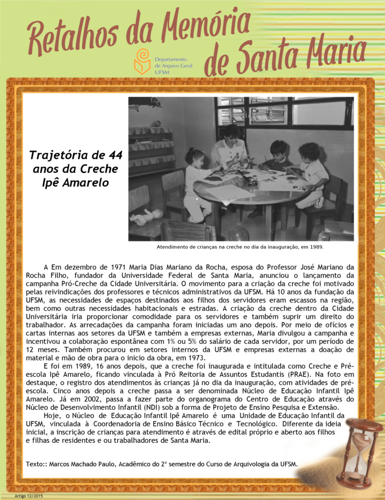 Projeto Retalhos da Memória de Santa Maria – artigo 012 Trajetória de 44 anos da Creche Ipê Amarelo