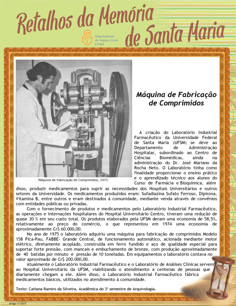 Projeto Retalhos da Memória de Santa Maria – artigo 011 Máquina de Fabricação de Comprimidos